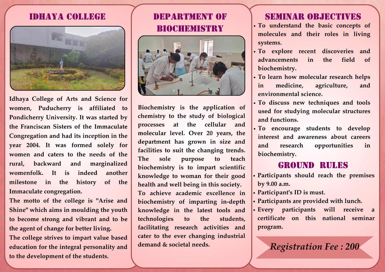 NATIONAL SEMINAR ON " EXPLORING THE MOLECULAR WORLD NEW PERSPECTIVES IN BIOCHEMISTRY"