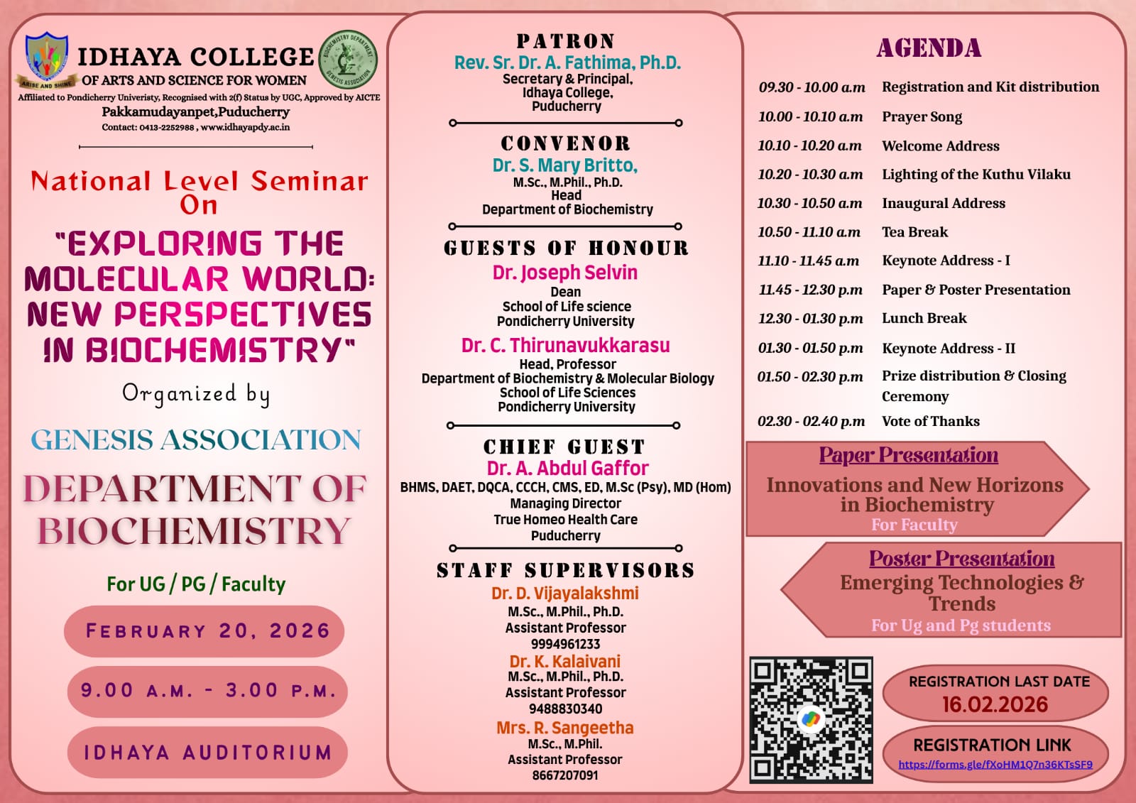 NATIONAL SEMINAR ON " EXPLORING THE MOLECULAR WORLD NEW PERSPECTIVES IN BIOCHEMISTRY"